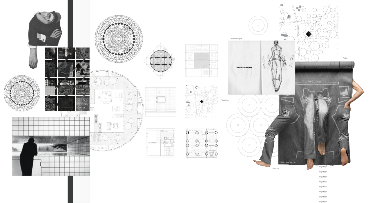 Strarting with a black and white moodboard, resembling arch plans and the concept of geometric repetition, until the circolar module.
