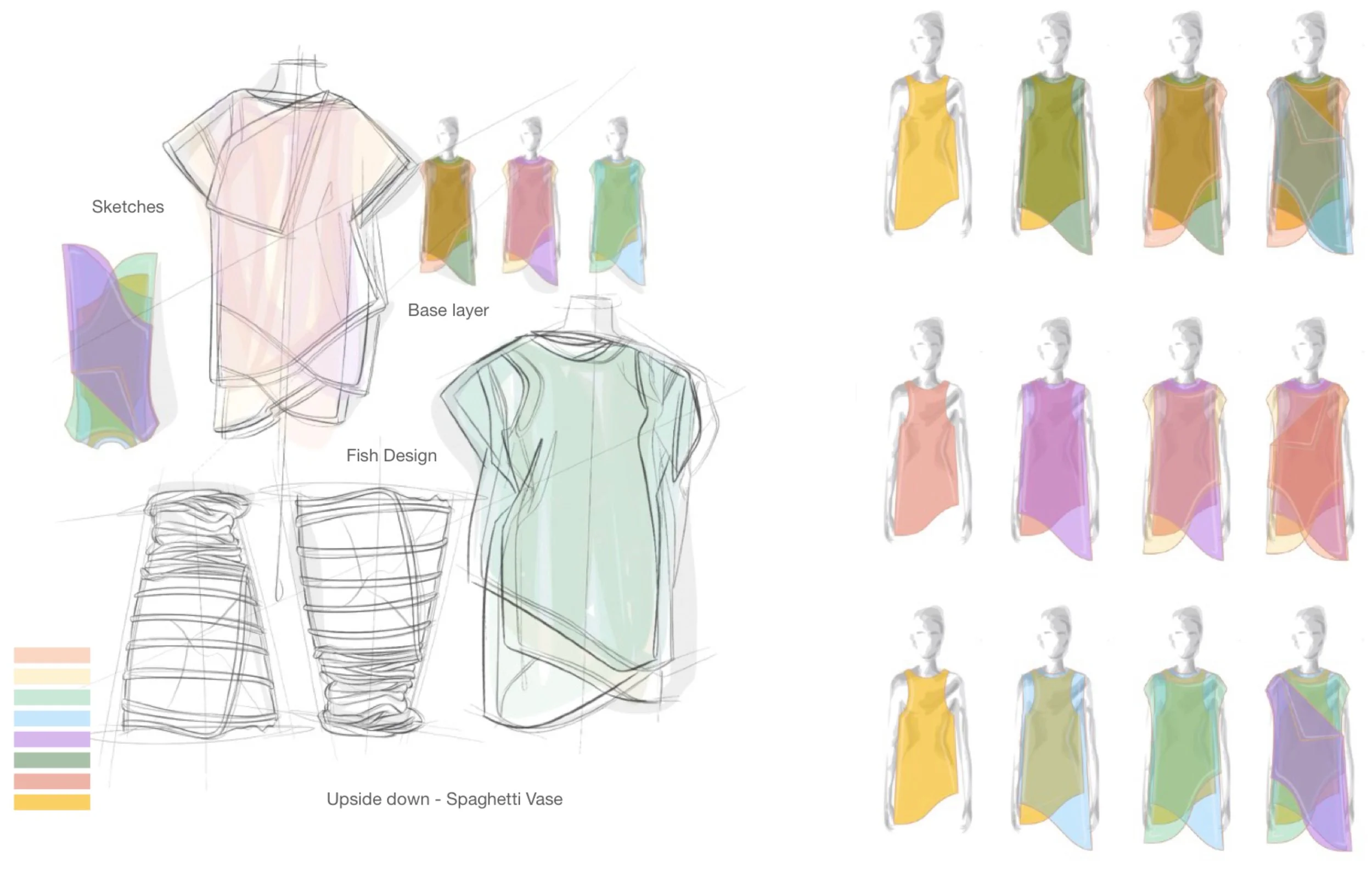 The looks consist of three dresses each, designed to be interchangeable and stackable.